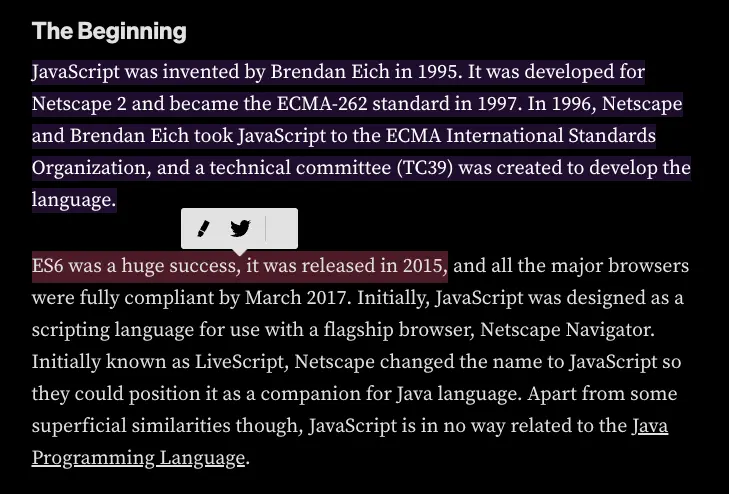 And there we have it! Now your page has a sharing tooltip that gets rendered near any selected text on your page.